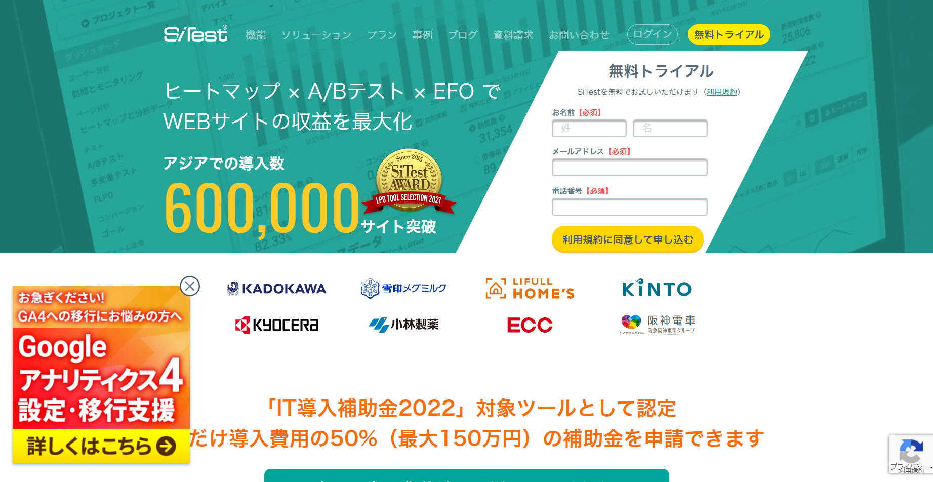 「SiTest」は、アジアで600,000サイト以上の導入実績を持つヒートマップツールです。